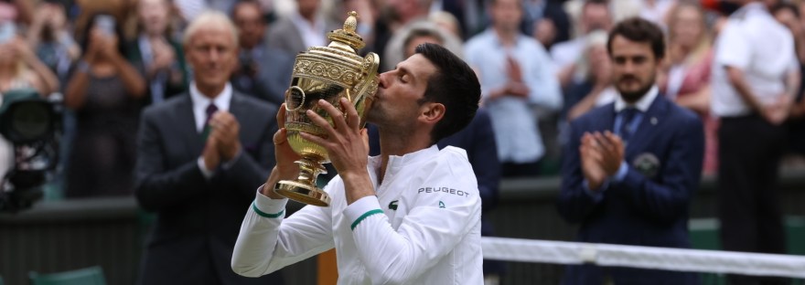 Ce dimanche, le Serbe Novak Djokovic (n°1) a remporté son sixième titre à Wimbledon, et son vingtième trophée en Grand chelem. Il a ainsi égalé le record détenu jusque-là par Roger Federer (n°9) et Rafael Nadal (n°3) et relance le débat du G.O.A.T. (Greatest Of All Time), le plus grand joueur de tous les temps.… Lire la suite Après son titre à Wimbledon, Novak Djokovic relance le débat du plus grand joueur de tous les temps